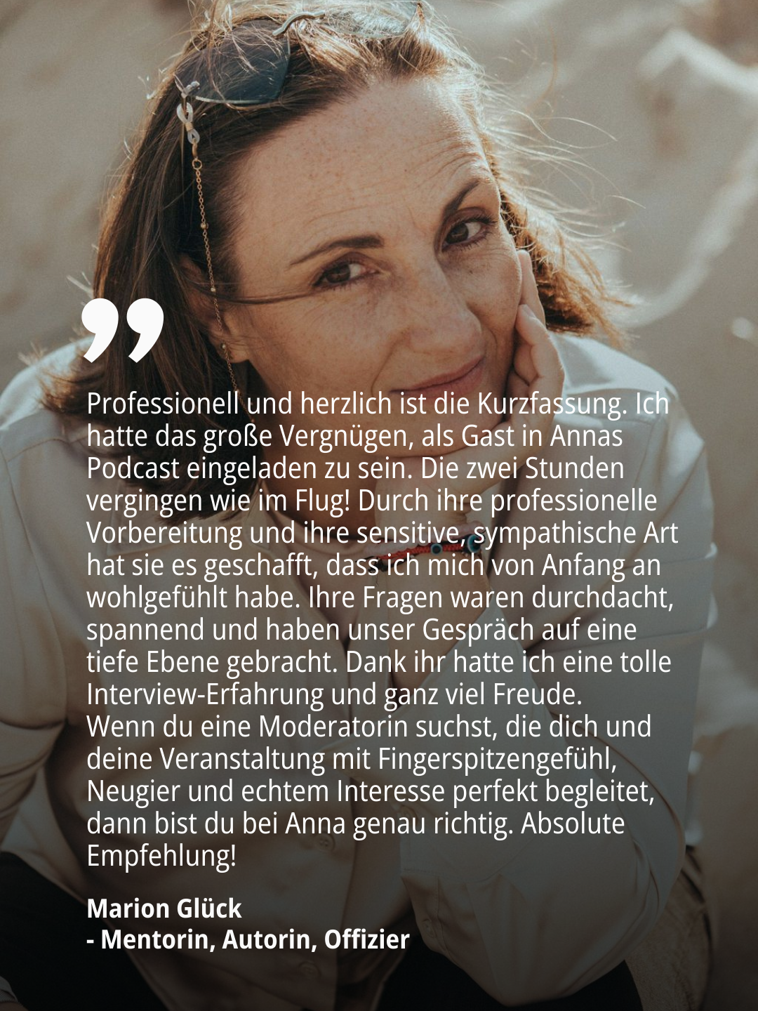 Ich bin Anna - Mentorin, Moderatorin und Podcasterin und unterstütze dich dabei, vor Menschen zu sprechen. Klar, souverän, selbstbewusst.